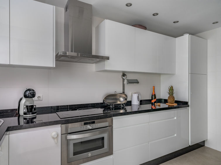 "Parador Hotel Area", 3-Zimmer-Wohnung 110 m2 im 3. Stock. Geräumig und hell, zweckmässig eingerichtet: Wohn-/Esszimmer mit Digital-TV, Klimaanlage und Warmluftheizung. Ausgang zur Terrasse. 1 Zimmer mit 1 franz. Bett (140 cm, Länge 200 cm), Klimaanlage und Warmluftheizung. 1 Zimmer mit 1 franz. Bett (160 cm, Länge 200 cm), Klimaanlage und Warmluftheizung. Offene Küche (Backofen, Geschirrspüler, 4 Glaskeramikplatten, Toaster, Wasserkocher, Mikrowelle, Tiefkühler, elektrische Kaffeemaschine). 2 Duschen/WC. Terrassenmöbel. Sicht auf das Meer, das Schwimmbad und das Städtchen. Zur Verfügung: Waschmaschine, Bügeleisen, Kinderhochstuhl, Babybett bis 3 Jahre, Haartrockner. Internet (WLAN, gratis). VUT/MA/00356 // Reg. Nr.: ESFCTU0000290130001863030000000000000000VUT/MA/003565