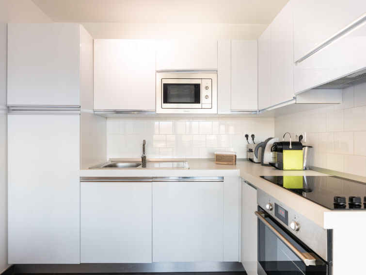 Appartement 2-kamers 57 m2 op de 3e verdieping. Comfortabel en gezellig ingericht: woon-/eetkamer met 1 2-pers divanbed (140 cm, lengte 190 cm), TV (Flatscreen TV). Uitgang naar het balkon. 1 kamer met 1 2-pers bed (160 cm, lengte 200 cm), TV (Flatscreen TV). Open keuken (4-pits kookplaat, oven, afwasmachine, broodrooster, waterkoker, magnetron, elektrische koffiemachine). Douche/WC, aparte WC. Elektrische verwarming, air-conditioning. Balkon 12 m2. Balkonmeubilair. Uitzicht op het zwembad. Ter beschikking: wasmachine. Internet (Internet (WiFi), gratis). Niet rokers woning. Rookmelders.