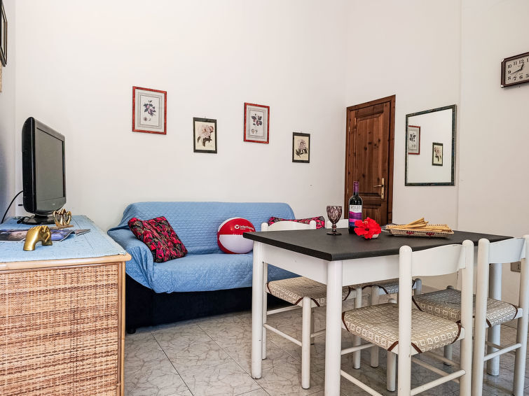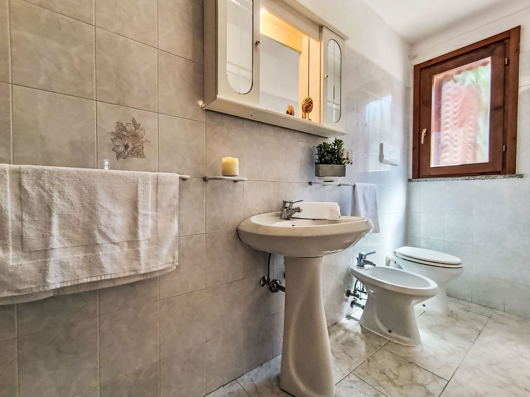 "Resi", appartement 3-kamers op verhoogde begane grond. Comfortabel en gezellig ingericht: woon-/eetkamer met eettafel, TV, air-conditioning en heteluchtverwarming. 2 2-pers. kamers. Kookhoek (oven, afwasmachine, 4 kookpitten (vlammen), broodrooster, waterkoker, elektrische koffiemachine). Douche/bidet/WC. Boiler. Verwarming niet in alle ruimtes. Balkon. Balkonmeubilair, barbecue, ligstoelen. Ter beschikking: wasmachine, strijkijzer, haardroger. Internet (WiFi, gratis). Parkeerplaats (omheind). Rookvrij huis. Rookmelders, brandblusser. IT090091C2000S0000