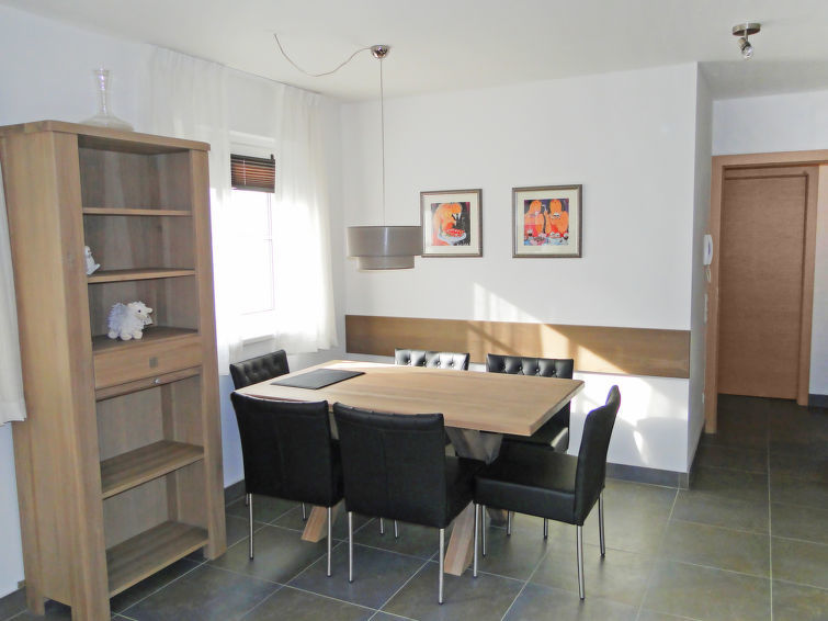 Appartement 3-kamers 57 m2, op de begane grond. Gezellig ingericht: woon-/eetkamer met eettafel en Kabel-TV (Flatscreen TV). Uitgang naar het terras. 1 2-pers. kamer met douche/WC. 1 2-pers. kamer. Open keuken (oven, afwasmachine, 4 keramische glas kookplaten, diepvriezer, elektrische koffiemachine). Bad/douche/WC. Groot terras. Terrasmeubelen. Uitzicht op de bergen. Ter beschikking: haardroger. Internet (Internet (WiFi), gratis). Garage. Niet rokers woning. Rookmelders. 50606-006869-2020
