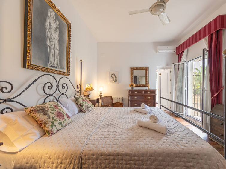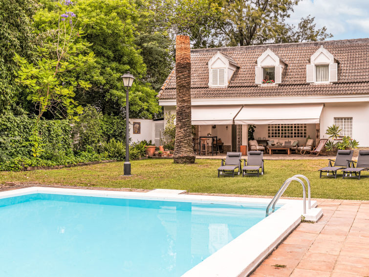 Comfortabele villa "Las Codornices". Aan de rand van de plaats Sanlúcar la Mayor, geïsoleerde, rustige, zonnige ligging. Voor alleengebruik: tuin 9.000 m2 met gazon en bomen, openluchtzwembad (12 x 6 m, 170 - 185 cm diepte, seizoensgebonden beschikbaarheid: 01.Jan. - 31.Dec.). Buitendouche, poolhouse, parkeerplaats (voor 10 auto's) bij het huis. Levensmiddelenwinkel 2 km, supermarkt 2 km, restaurant 2 km, bakkerij 2 km, bushalte 2 km, treinstation 2 km, zandstrand 60 km. Jachthaven 80 km, golfterrein (18 holes) 10 km, tennis 2 km. Attracties in de buurt: Sevilla 19 km, Aldea del Rocío 50 km. Wandelgebied Parque de Doñana 50 km, Corredor Verde del Río Guadiamar 2 km. De eigenaar accepteert geen jeugdgroepen.