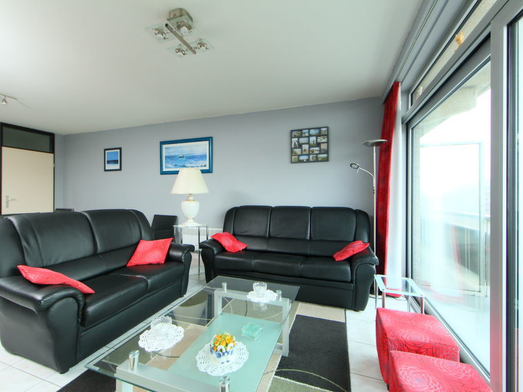 "Apt. 403", appartement 2-kamers 60 m2 op de 4e verdieping. Ruim en licht, comfortabel ingericht: woon-/slaapkamer met 1 2-pers divanbed, TV en elektrische verwarming. Uitgang naar het balkon. 1 kamer met 1 2-pers bed (1 x 160 cm). Open keuken (oven, afwasmachine, 4 keramische glas kookplaten, magnetron, elektrische koffiemachine). Douche/WC. Balkon. Balkonmeubilair. Ter beschikking: Internet (Internet (WiFi), gratis). Garage nr. 12 op het terrein (1 Auto).