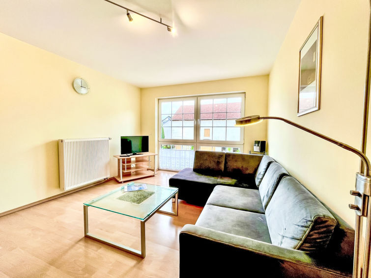 Appartement 2-kamers 40 m2 op de 1e verdieping. Het objekt is geschikt voor 2 volwassenen. Modern en smaakvol ingericht: woon-/eetkamer met Sat-TV. 1 kamer met 2 bedden. Kookhoek (oven, afwasmachine, magnetron, diepvriezer, elektrische koffiemachine). Douche/WC. Niet rokers woning. Rookmelders. De 2-pers kamer beschikt in plaats van een raam over glazen stenen. Boekingen zijn alleen voor vakantiedoeleinden toegestaan.
