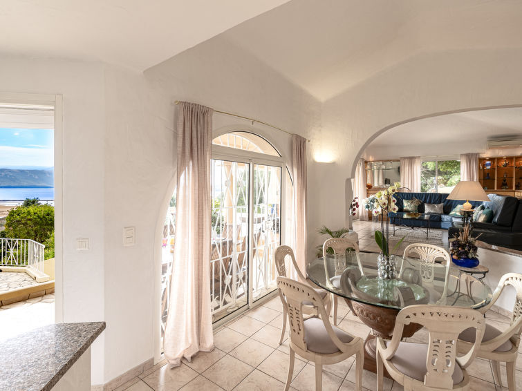 "Casa Di Sogno", villa 5-kamers 200 m2 op 2 verdiepingen. Mooi ingericht: groot woon-/eetkamer met panoramavenster met open haard (alleen decoratie), eettafel. Uitgang naar het terras. 1 groot kamer 30 m2 met 1 divanbed (140 cm, lengte 190 cm), TV (Flatscreen TV). Uitgang naar de tuin. 1 kamer met 2 bedden (120 cm, lengte 190 cm). 1 kamer met 1 2-pers bed (160 cm, lengte 200 cm). Uitgang naar het terras. Open keuken (oven, afwasmachine, 4 inductiekookplaten, broodrooster, waterkoker, magnetron, diepvriezer, elektrische koffiemachine, pads voor de koffiemachine (Nespresso) extra) met kleine eettafel. Uitgang naar het terras. Badkamer, aparte WC. Elektrische verwarming, air-conditioning. Bovenverdieping: 1 groot kamer met 1 2-pers bed (160 cm, lengte 200 cm), TV (Flatscreen TV). Badkamer, aparte WC. Terrasmeubelen, barbecue, ligstoelen. Zeer mooi uitzicht op zee en de bergen. Ter beschikking: wasmachine, droger, strijkijzer, haardroger. Internet (WiFi, gratis). Parkeerplaats (omheind, 2 Auto's). Rookvrij huis. 1 klein huisdier/hond toegestaan. Rookmelders. Aanbod door een particulier volgens art. 155, IV van CGI. 2A247000796C7