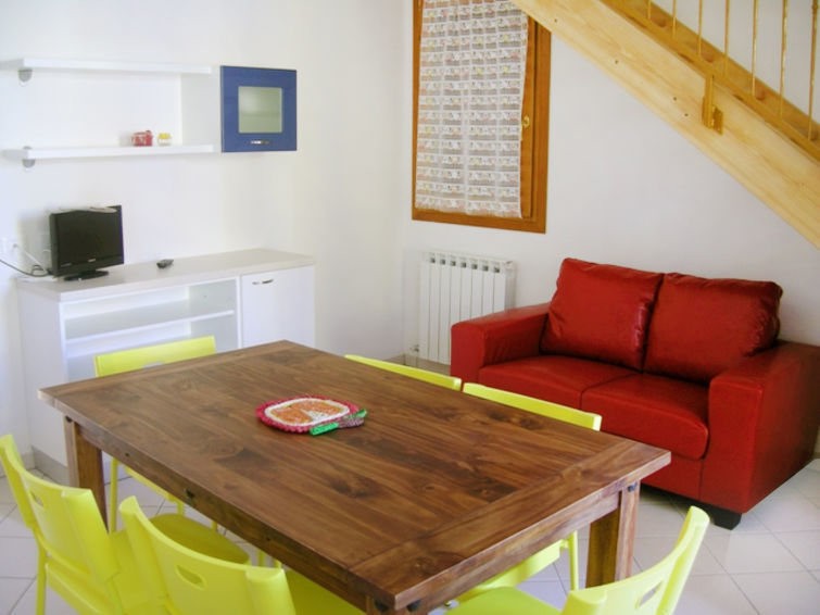 Appartement 4-kamers 70 m2 op 2 verdiepingen op de 1e verdieping. Gedeeltelijk afgeschuinde daken, doelmatig ingericht: hal met 1 slaapplaats en TV. Eetkamer. 1 kamer met 1 2-pers bed. Keuken (4-pits kookplaat, mini-oven, diepvriezer). Douche/bidet/WC. Bovenverdieping: 1 kamer met 2 bedden. 1 kamer met 1 2-pers bed. Douche/bidet/WC. Air-conditioning. Geen verwarmingsmogelijkheid. Ter beschikking: kinderstoel, kinderbed (extra). Internet (WiFi, gratis). Parkeerplaats. Maximaal 1 huisdier/hond toegestaan. Privé ingang. In plaats van een afgesloten slaapkamer bevinden sommige slaapgedeeltes zich in een open ruimte (galerij, nis, etc.). IT029040B4UVO8Q6T8