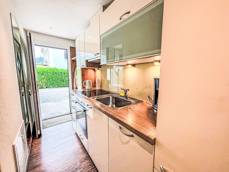 "TOP 4", appartement 1-kamer 33 m2, op de begane grond. Mooi en gezellig ingericht: woon-/slaapkamer met 1 2-pers bed, eettafel, Sat-TV en internationale TV-zenders (Flatscreen TV). Uitgang naar het terras. Kleine kookhoek (oven, afwasmachine, 4 keramische glas kookplaten, waterkoker, elektrische koffiemachine). Douche/WC. Vloerverwarming. Parketvloeren. Klein terras. Terrasmeubelen. Ter beschikking: Internet (WiFi, gratis). Niet rokers woning.