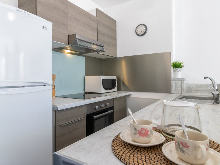 Appartement 4-kamers 70 m2 op de 1e verdieping. Ruim en licht, doelmatig en comfortabel ingericht: woon-/eetkamer met eettafel, Sat-TV en Digitale TV (Flatscreen TV), air-conditioning, ventilator en heteluchtverwarming. Uitgang naar het balkon. 1 kamer met 1 2-pers bed (135 cm). 1 kamer met 1 2-pers bed (135 cm), air-conditioning en heteluchtverwarming. 1 kinderkamer met 1 x 2 stapelbedden (90 cm). Open keuken (oven, afwasmachine, 3 inductiekookplaten, broodrooster, waterkoker, magnetron, diepvriezer, elektrische koffiemachine). Bad/WC, douche/WC. Parketvloeren. Klein terras 5 m2. Terrasmeubelen. Uitzicht op het zwembad en de tuin. Ter beschikking: wasmachine, strijkijzer, haardroger. Internet (WiFi, gratis). Parkeerplaats nr. 52 (overdekt). Maximaal 1 huisdier/hond toegestaan. TV alleen FR, ES. HUTG044023